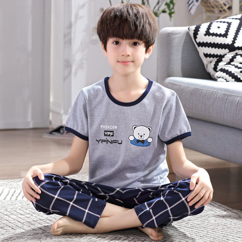 红豆男孩睡衣短袖长裤纯棉男童睡衣夏季中大童初中学生3-12-15岁