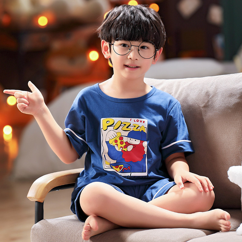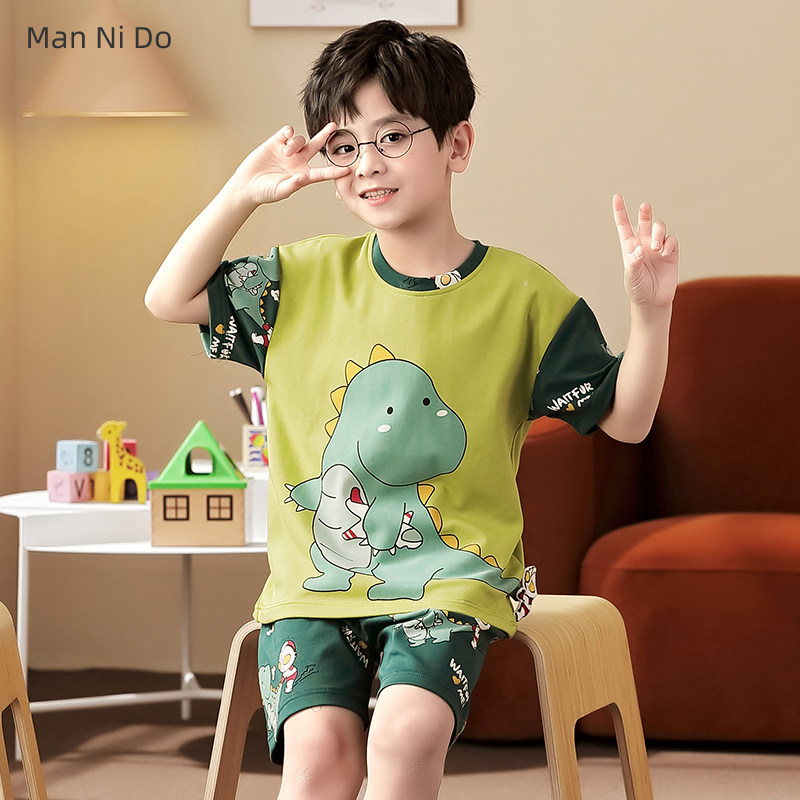 红豆居家儿童睡衣男童夏季薄款纯棉中大童宝宝夏天短袖短裤男孩家