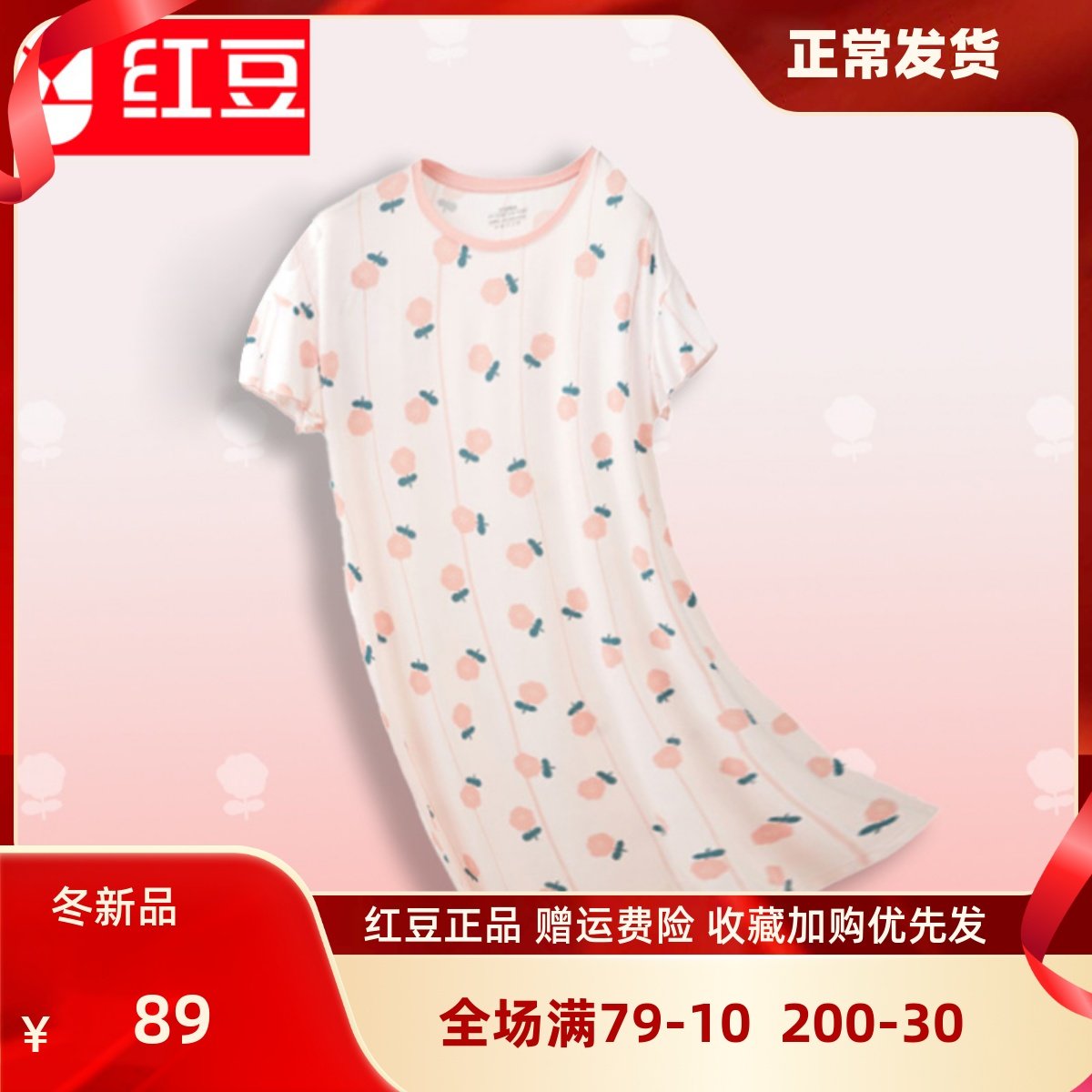 正品红豆50S莫代尔女士女童短袖可外穿居家服睡衣裙女款春秋顺滑