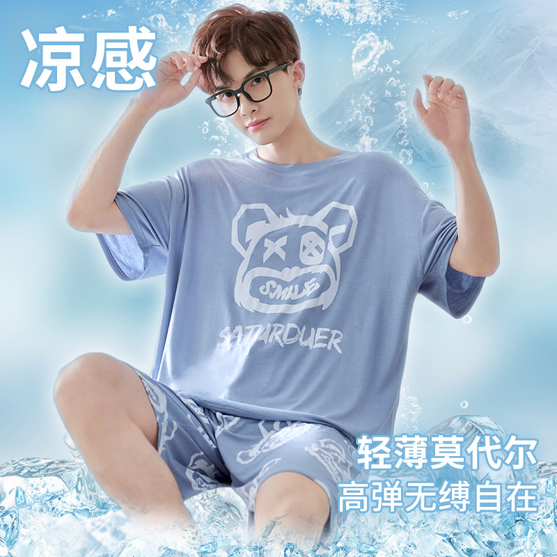 红豆男士睡衣夏季莫代尔短袖薄款冰丝夏款卡通青少年学生大童大码