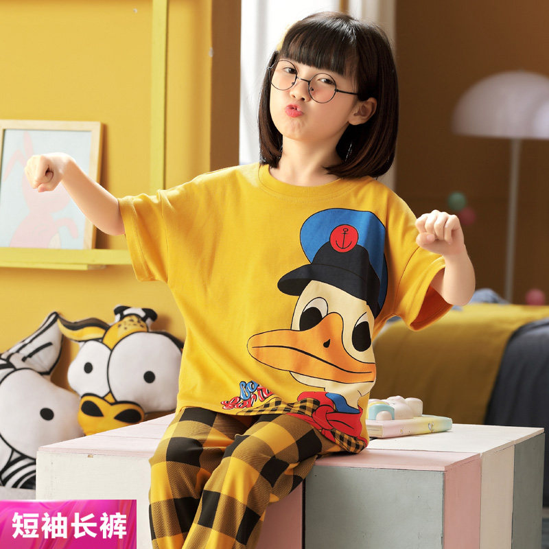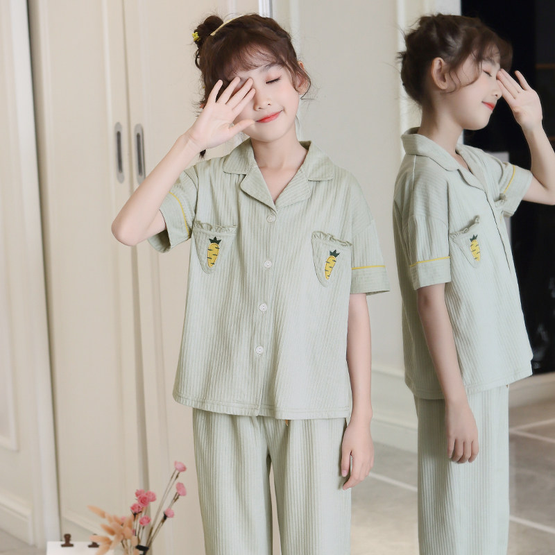 红豆大童睡衣女孩夏季短袖长裤纯棉青少年初中学生12-15岁少女