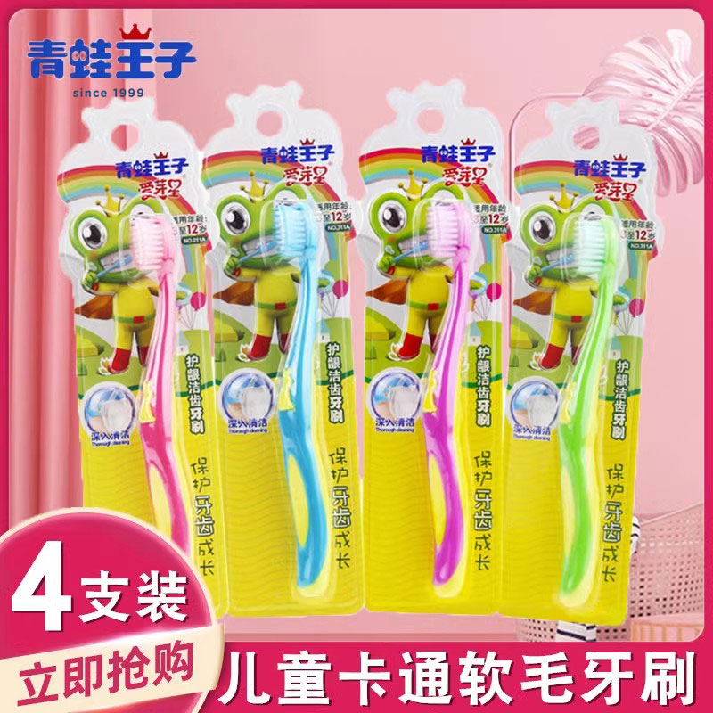 包邮青蛙王子妙奇蛙儿童护龈洁齿牙刷4支装 宝宝超细软毛牙刷311A