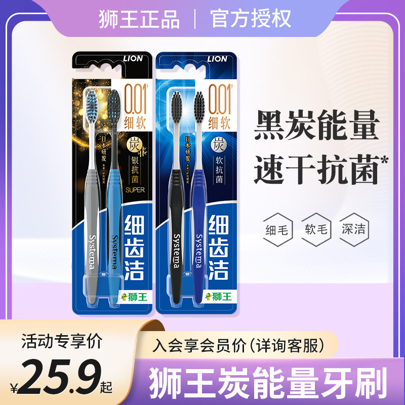 LION狮王细齿洁宽薄牙刷凸面凸头软毛大人家用男女成人情侣家庭装