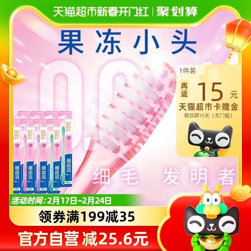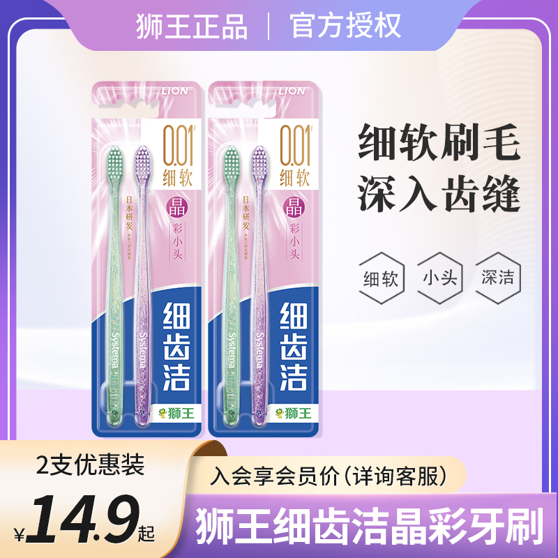 狮王细齿洁晶彩牙刷软毛细毛小头成人家庭组合套装小刷头透明手柄