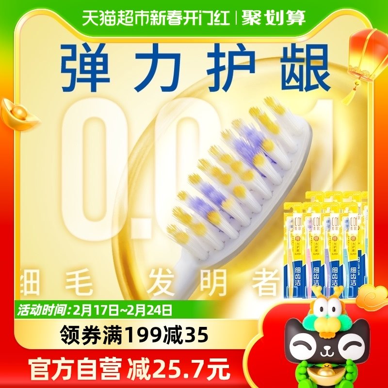 高露洁蓬蓬丝软毛牙刷6支家庭装超密细毛小头牙齿敏感抗护龈清洁