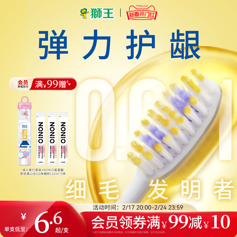 狮王细齿洁牙刷软毛弹力护龈细软刷毛清洁牙龈牙缝特惠装成人家庭