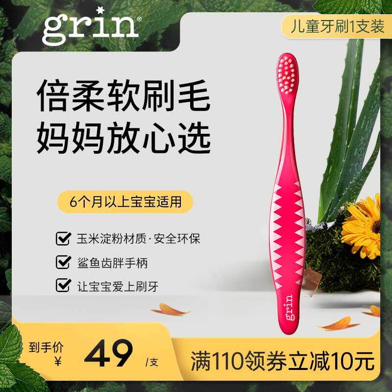 grin儿童牙刷软毛超细小头0-3-6-12以下宝宝牙齿清洁换牙期专用