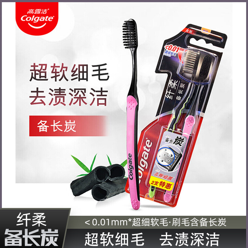 高露洁牙刷纤柔备长炭深洁2支装保护牙龈清洁牙齿超细软毛正品