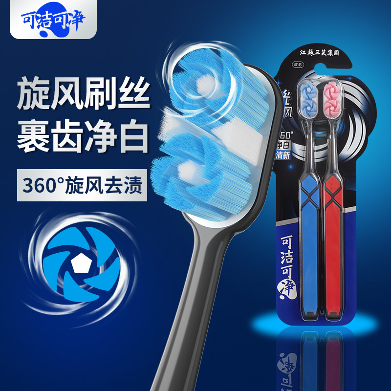 高档牙刷男士专用螺旋软毛柔软细丝宽头护龈洁齿防滑手柄独立包装