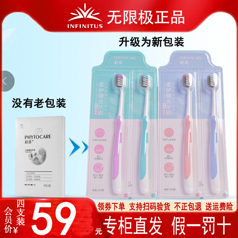 无限极植雅柔护健齿牙刷4支装家庭装手动清洁小头软细毛舌苔护龈