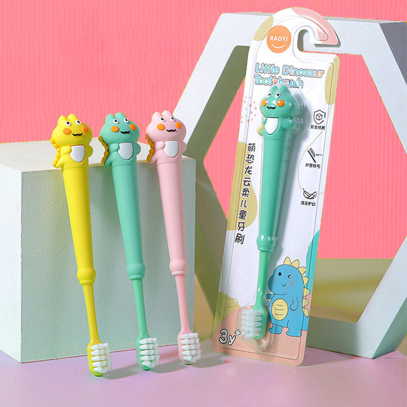 儿童牙刷6-12岁硅胶柄卡通恐龙超细软毛上学清洁护齿1支装洁齿刷
