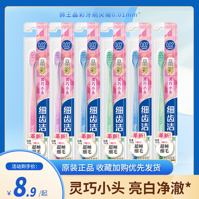 LION狮王细齿洁晶彩小头软毛牙刷细毛护齿护龈水晶刷柄8支×1套