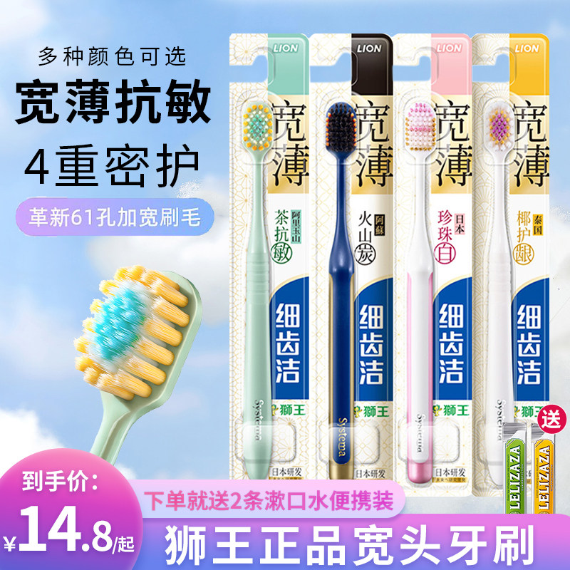 LION狮王细齿洁宽薄牙刷高密软毛护龈清洁按摩宽头男女士成人家庭