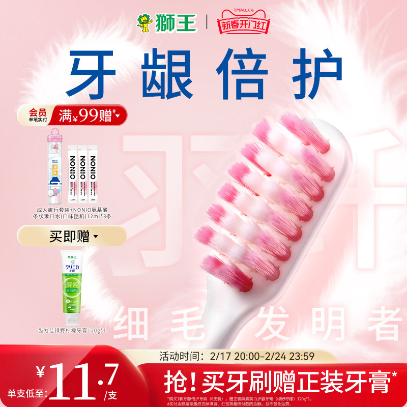 LION狮王细齿洁牙龈倍护孕妇软毛牙刷软毛护龈月子