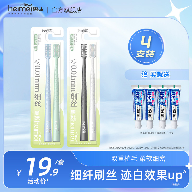 成人纳米牙刷软毛洁齿纤细柔软亮白健齿男女专用情侣学生家庭装