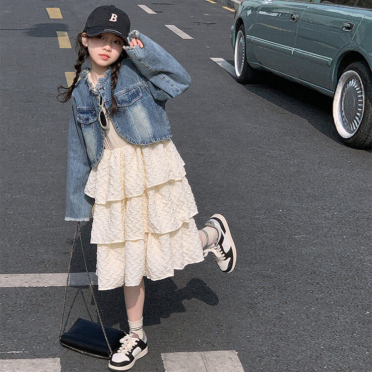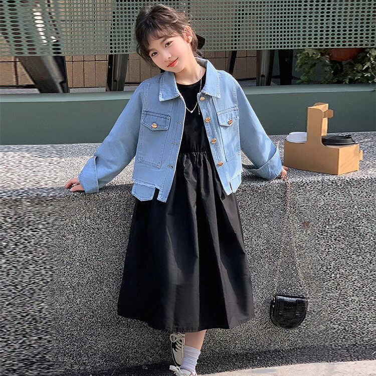 女童牛仔外套背心连衣裙2024年春秋新款中大童春装两件套韩版洋气