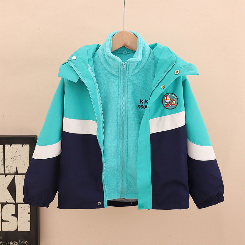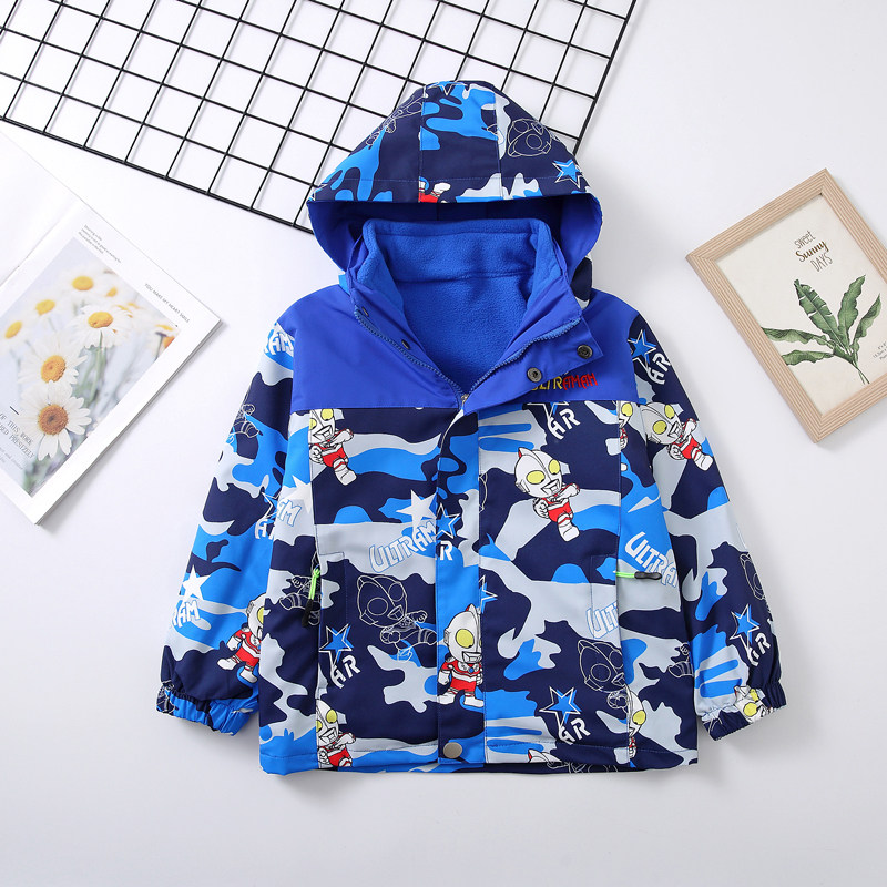 童装冲锋衣男童三合一可拆卸男宝宝外套秋冬加厚加绒两件套奥特曼