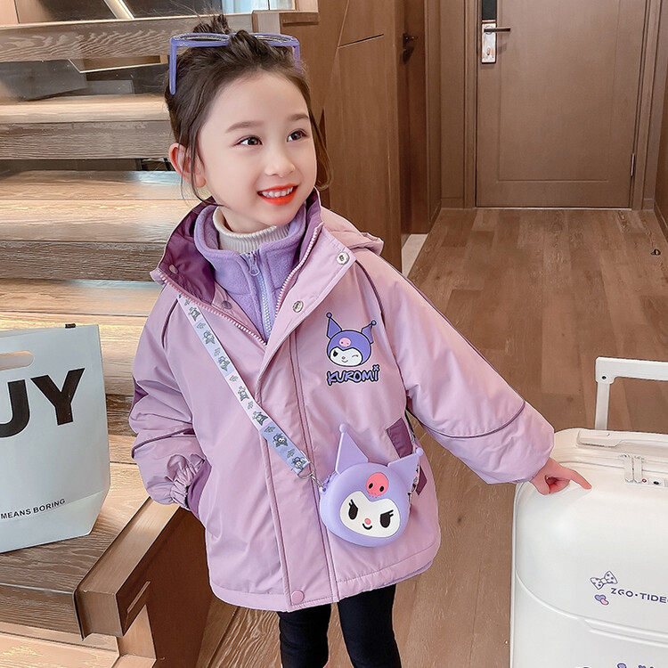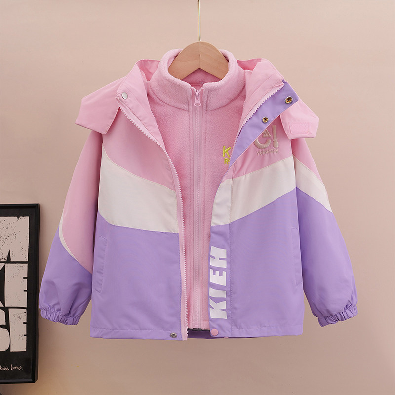 儿童冲锋衣外套女2023秋冬季韩版新款女小童加厚加绒两件套库洛米