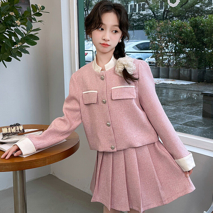 女童外套秋冬季新款小香风年服套装中大童过年新衣两件套韩版洋气