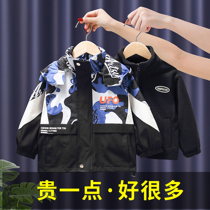 男童冲锋衣可拆卸加厚加绒中小童风衣三合一洋气宝宝外套秋冬时尚