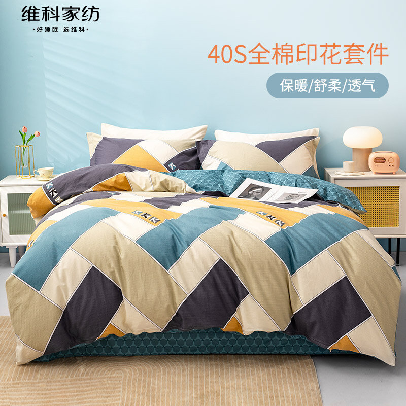 维科被套全棉四件套100纯棉简约床单三件套四季通用被套床上用品