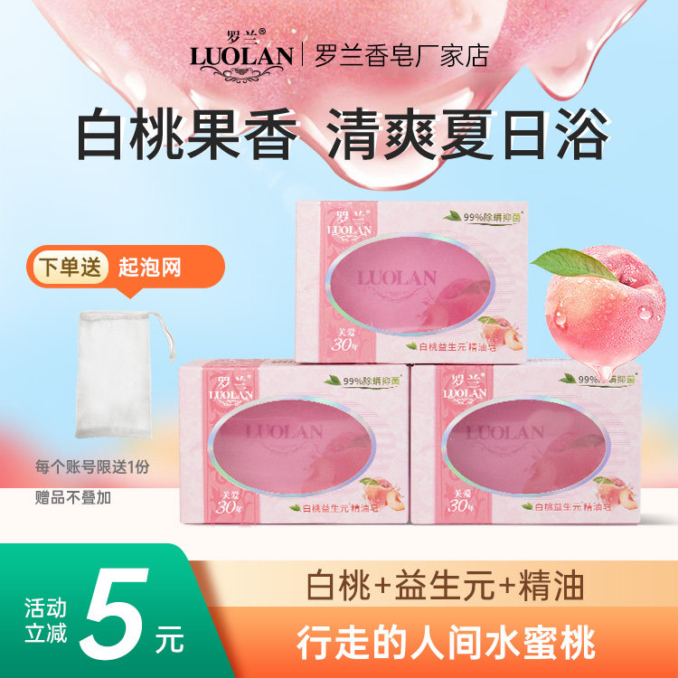 罗兰香皂除螨抑菌皂洗脸洗澡白桃益生元手工精油香皂清爽控油男女