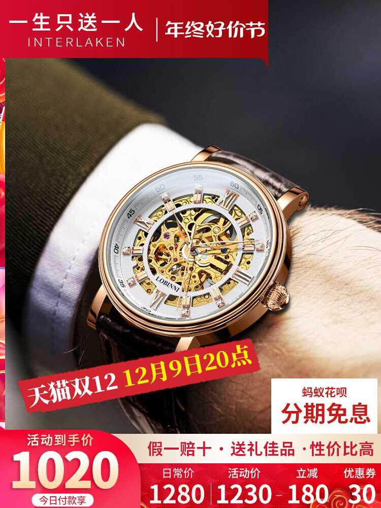 罗宾尼lobinni品牌正品名牌镂空男表手表男士全自动机械表男款