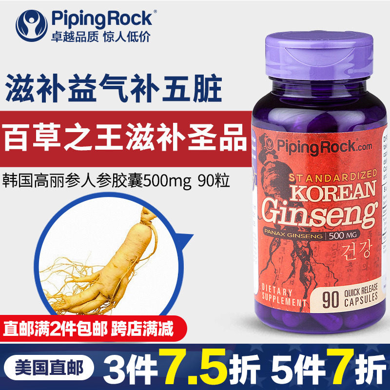 韩国高丽参人参胶囊滋补益气补五脏六年根500mg90粒【美国直邮】