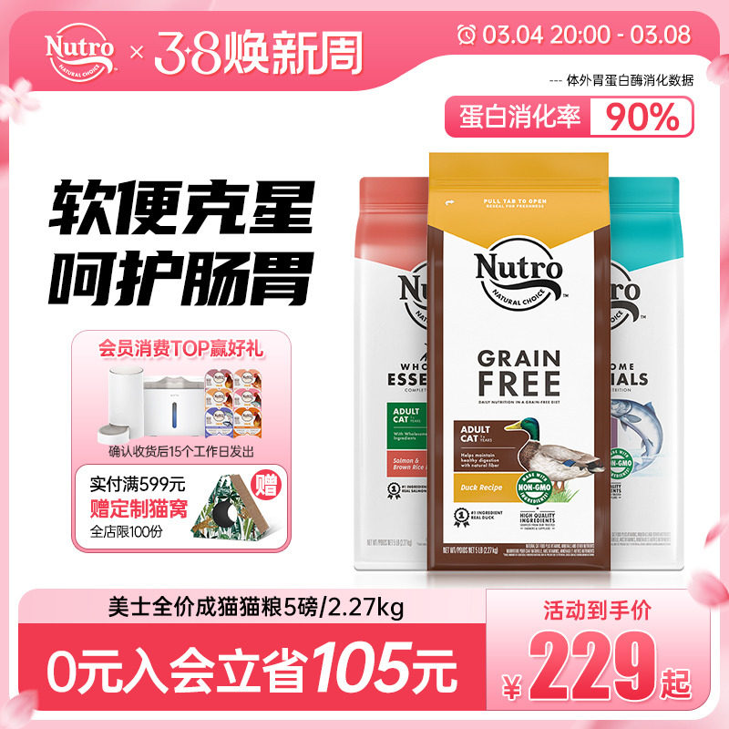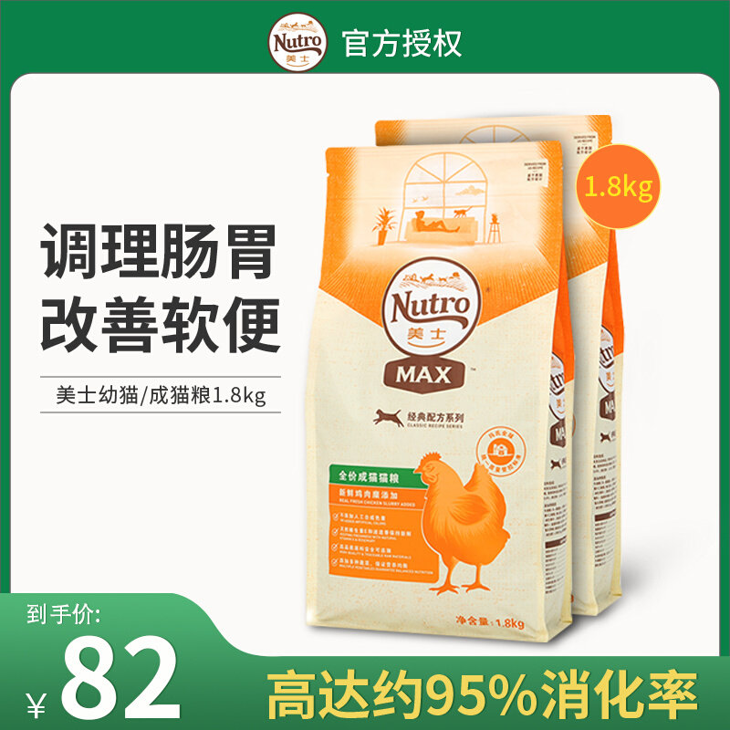 美士猫粮成猫鸡肉增肥发腮改善软便三文鱼国产nutro1.8kg美式猫粮