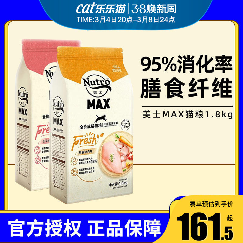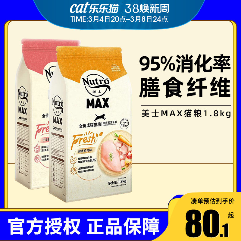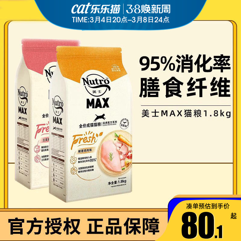 美士猫粮鸡肉三文鱼全价成猫幼猫蓝猫专用旗舰店nutro美式MAX猫粮