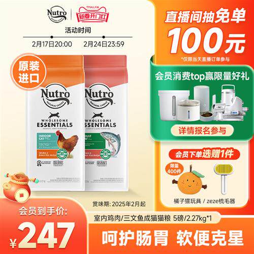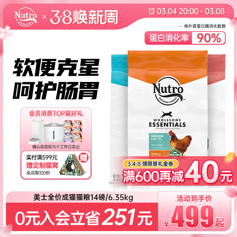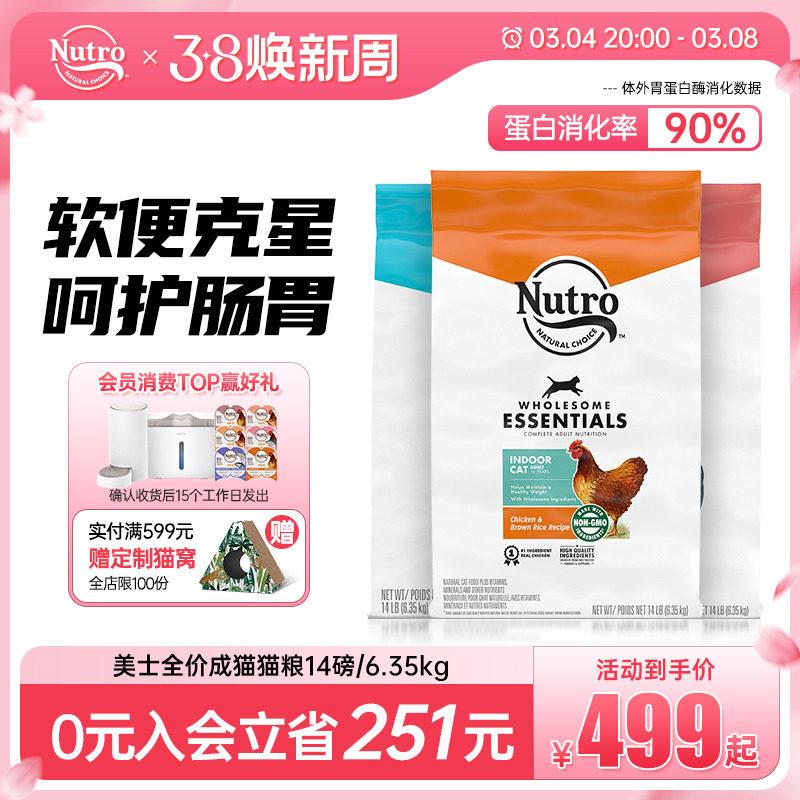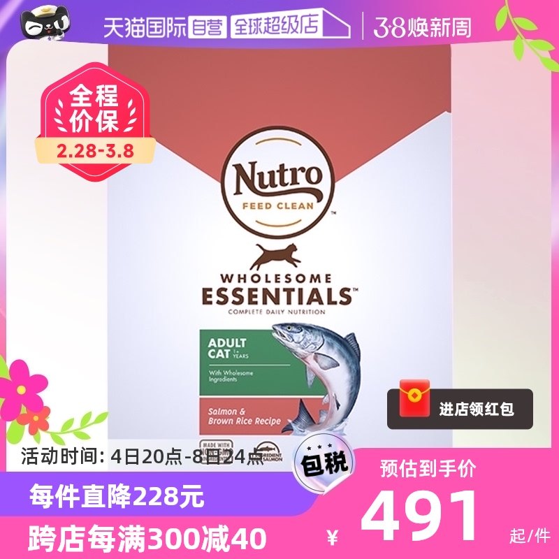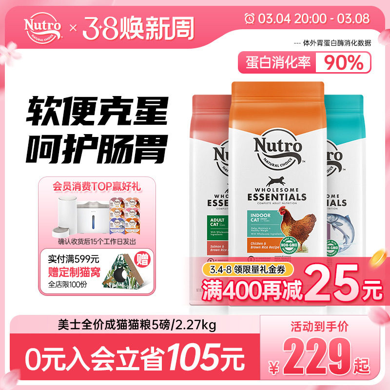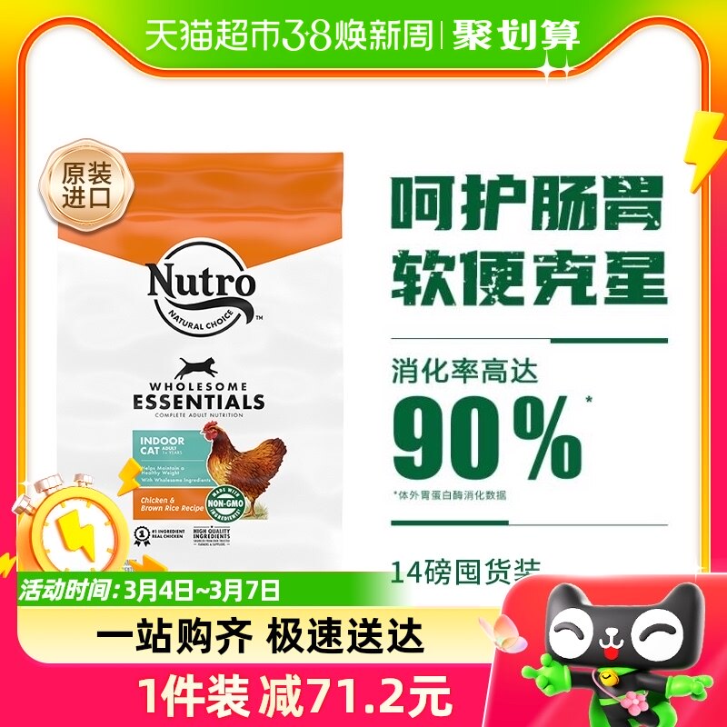 活动特价美士Nutro室内成猫鸡肉三文鱼无谷高蛋白增肥发腮成猫粮