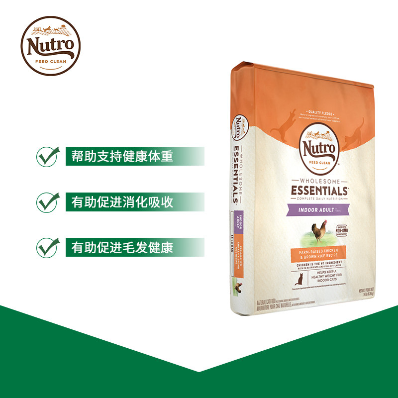 【自营】Nutro美士进口主粮天然原肉猫粮室内成猫鸡肉干粮6.35kg