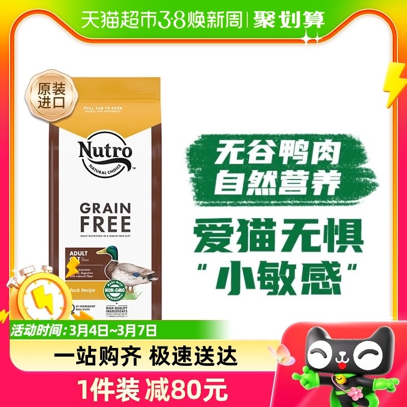 【美国进口】Nutro美士含鸭肉无谷配方全价成猫猫粮5磅 约2.27kg