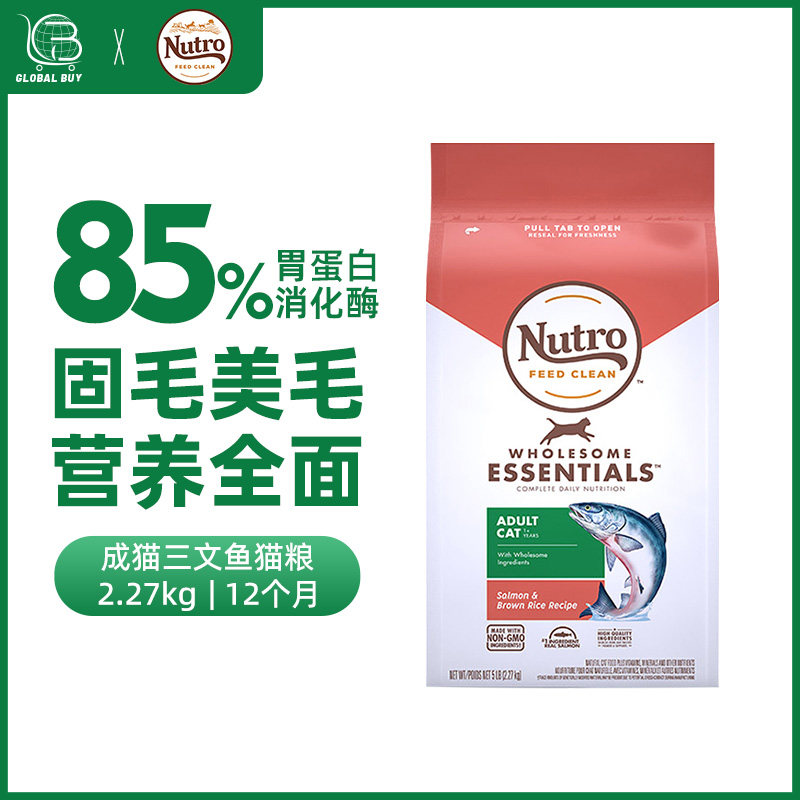 【国际正品】美士Nutro进口成猫三文鱼肉猫粮亮毛发腮调理肠胃5磅
