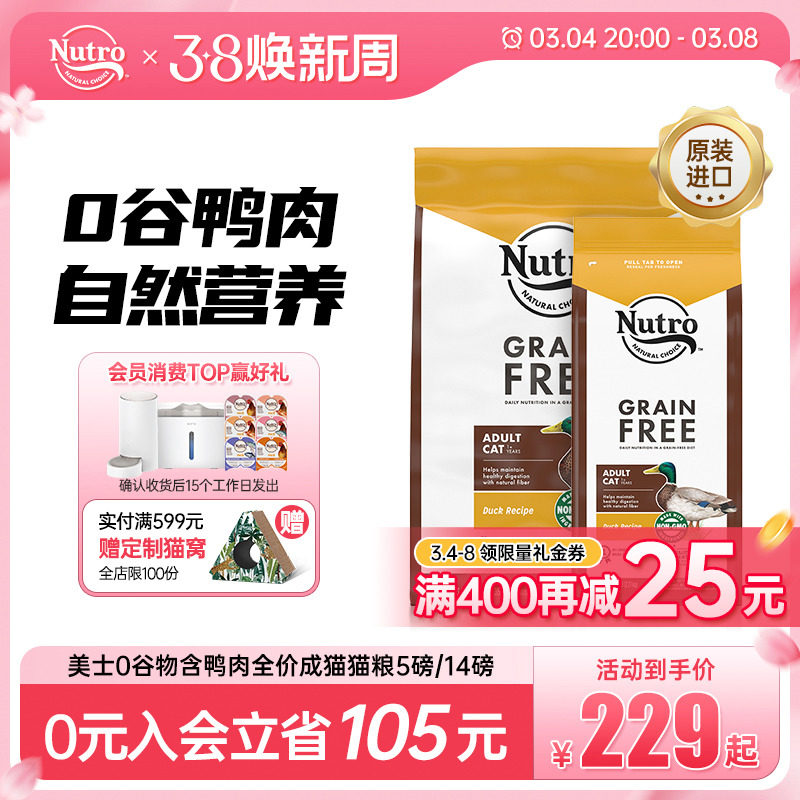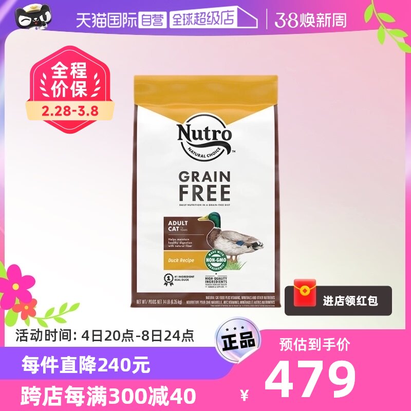 【自营】Nutro美士含鸭肉无谷配方全价成猫猫粮6.35kg