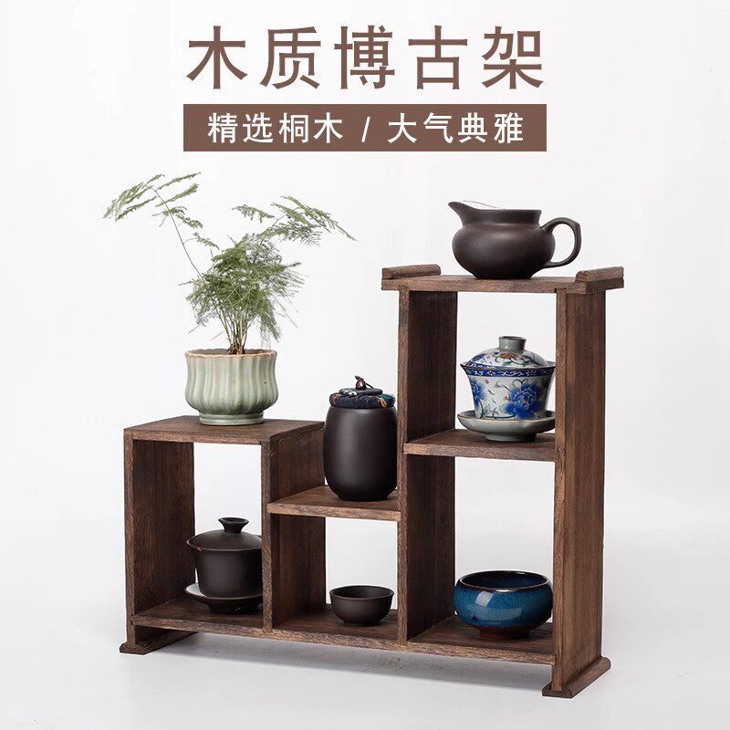 桌面博古架茶壶架多宝阁中式收纳置物茶架壁挂展示架九宫格格子