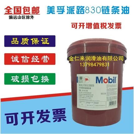 美孚派路链条油Mobil Pyrolube830洪烤线耐高温润滑油液本18L20升