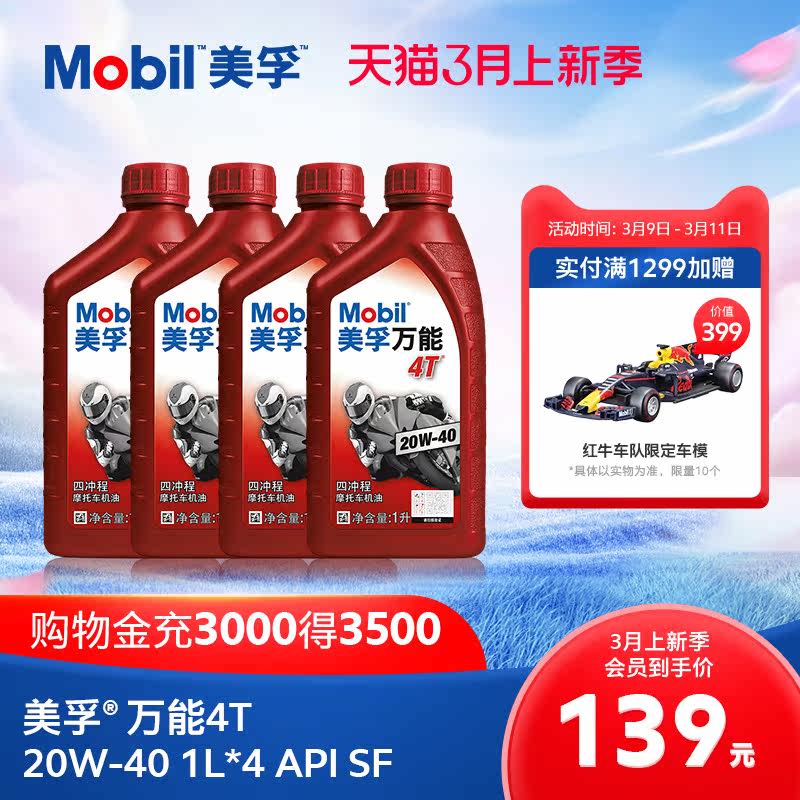 Mobil美孚万能4T 20W-40 1L*4 矿物质机油摩托车润滑油官方正品