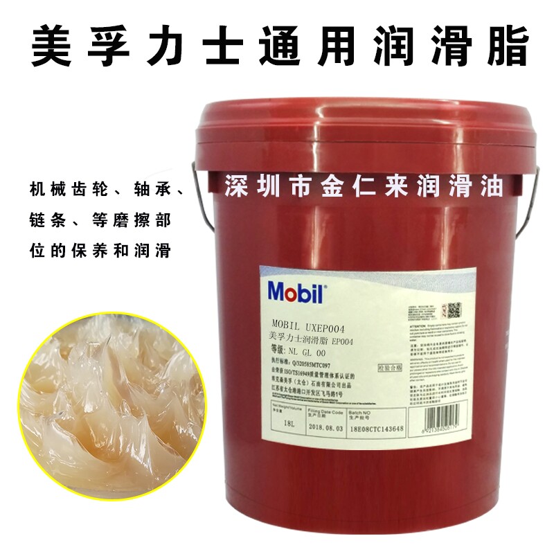 美孚润滑脂力士EP2号0 3#004锂基脂耐高温黄油润滑油机械1牛油18L
