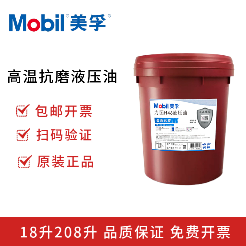 美孚力图抗磨液压油H46压力油68号32机械机器机油润滑油18L208升