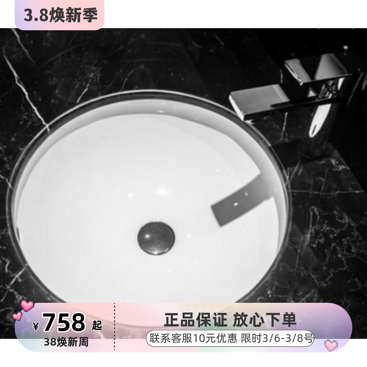 美标台下盆嵌入式家用卫生间陶瓷方形圆形洗脸盆洗手盆洗手池台盆