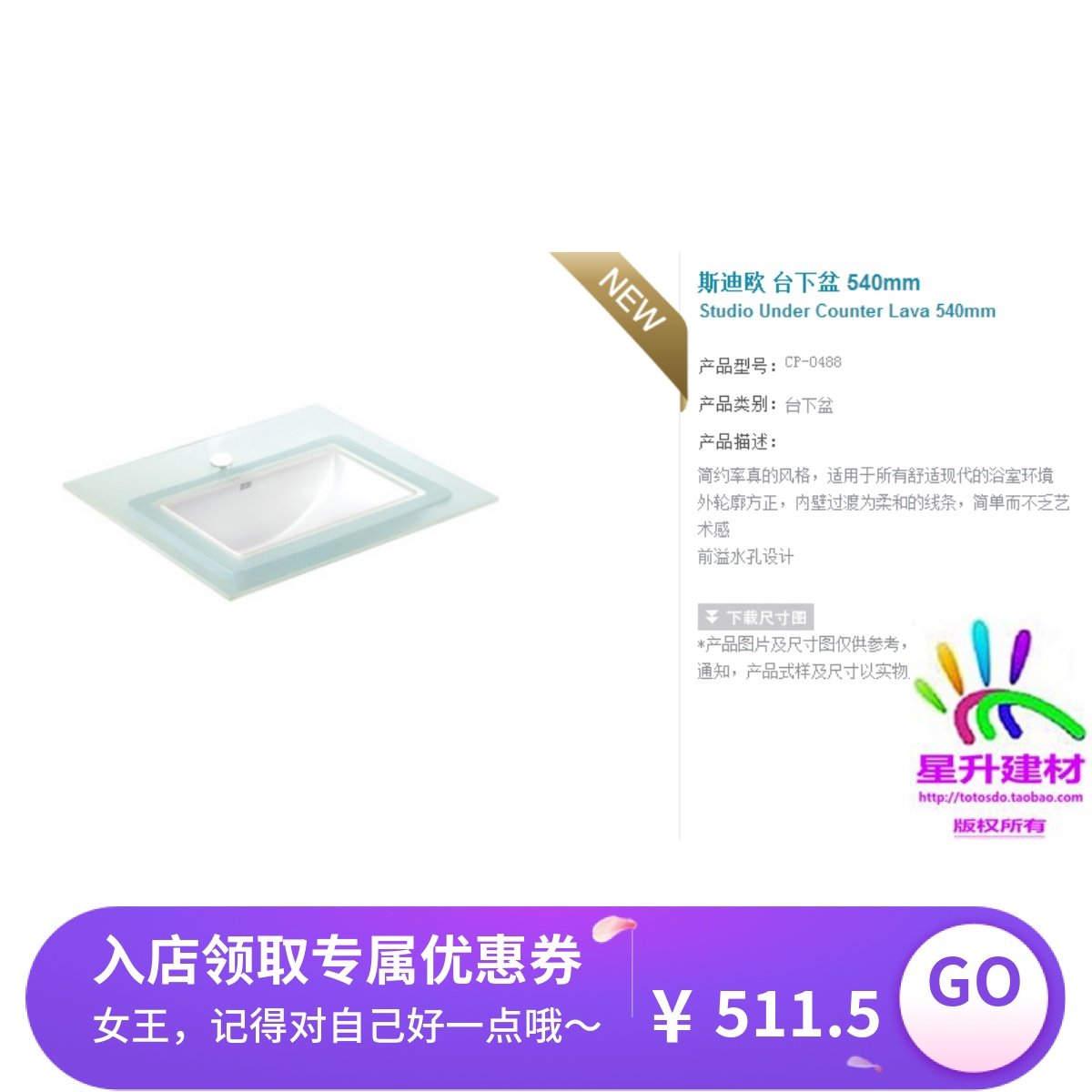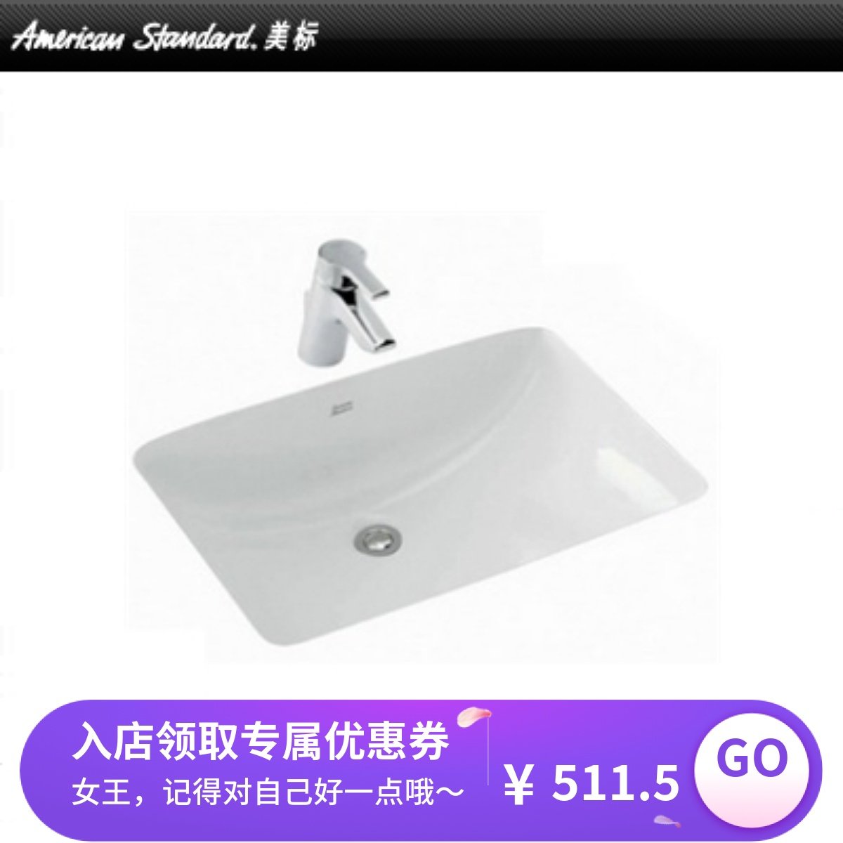美标台下盆陶瓷洗脸盆方形CCAS0440