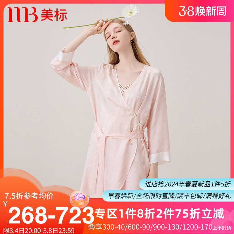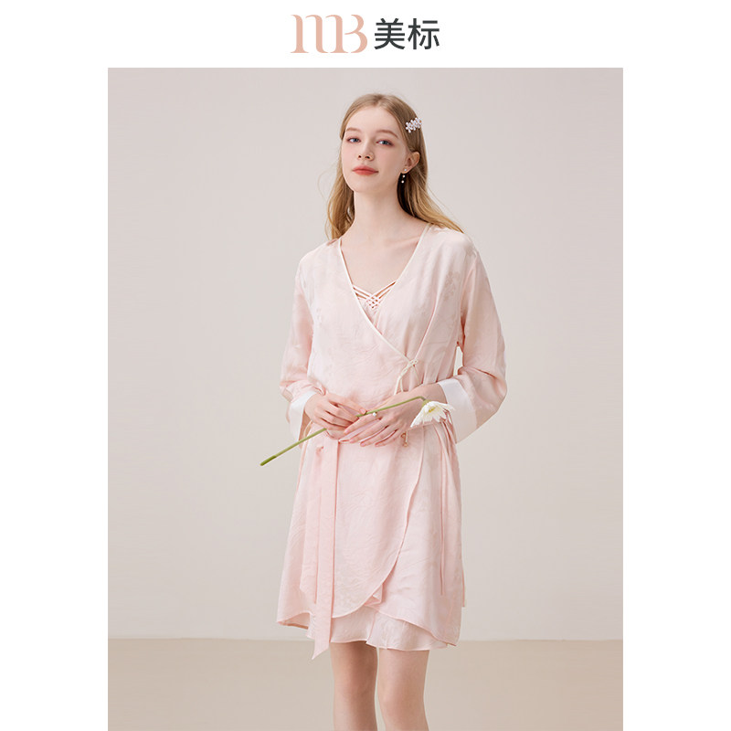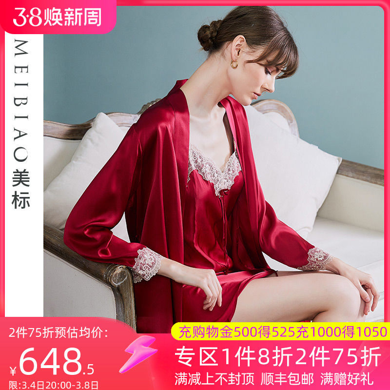 美标真丝睡衣女性感睡裙睡袍两件套春夏100%桑蚕丝浴袍丝绸家居服