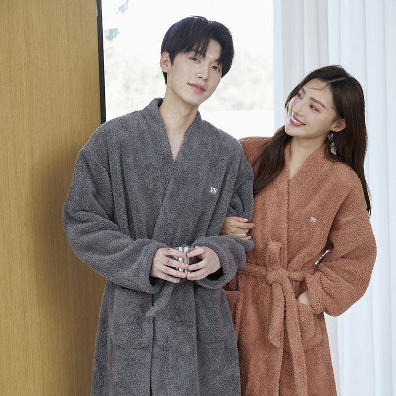 美标冬季睡衣情侣睡袍男女中长款加厚珊瑚绒法兰绒浴袍加绒家居服