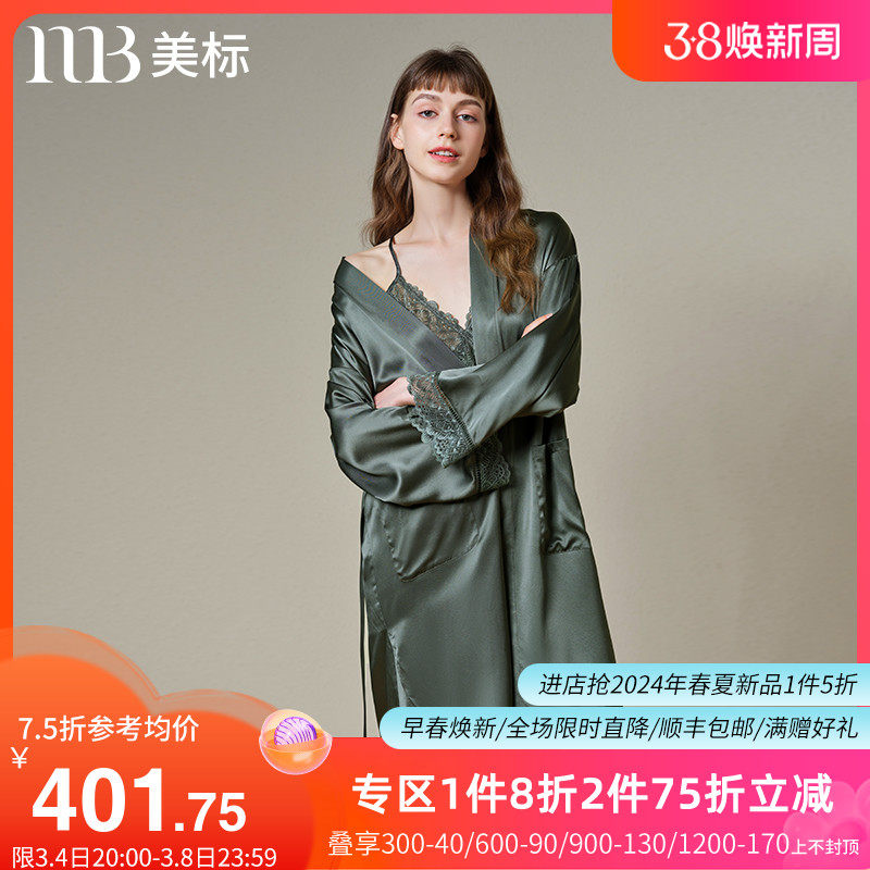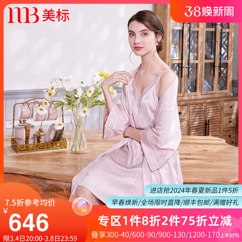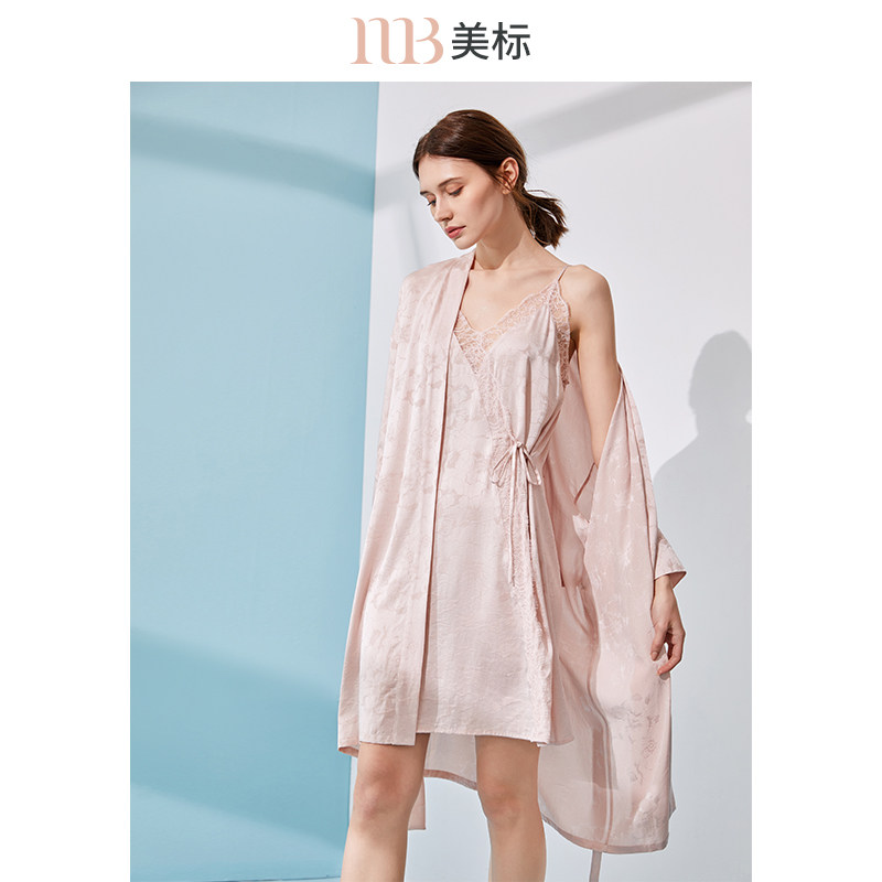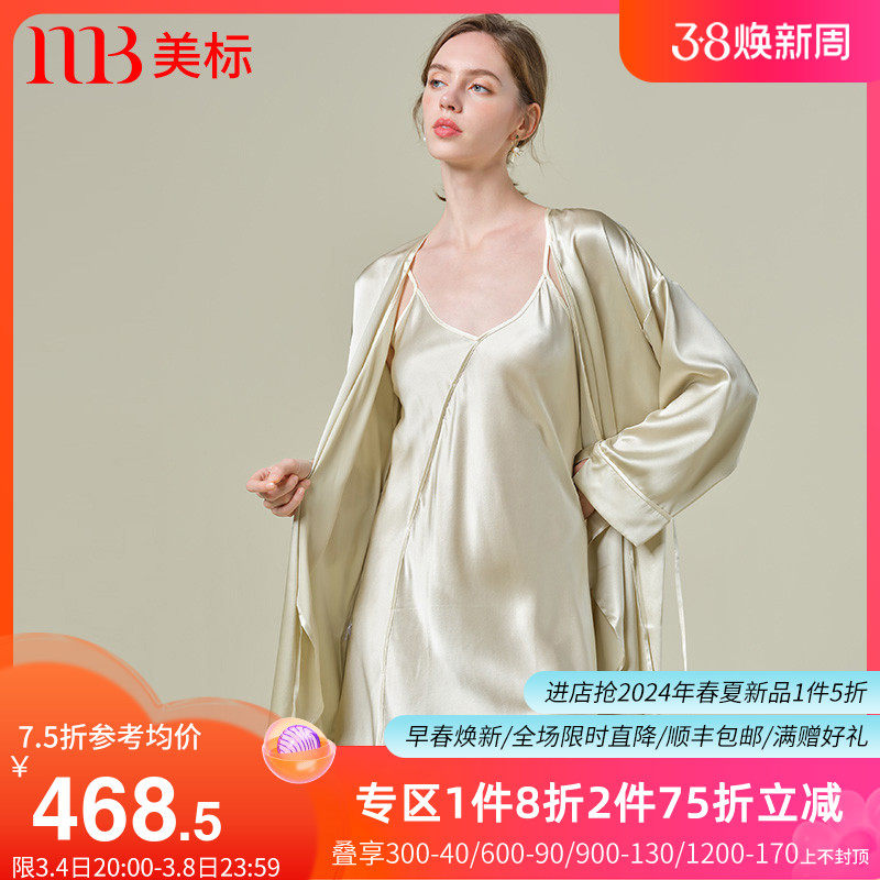 美标真丝睡衣睡袍浴袍吊带睡裙两件套女春夏重磅桑蚕丝家居服晨袍