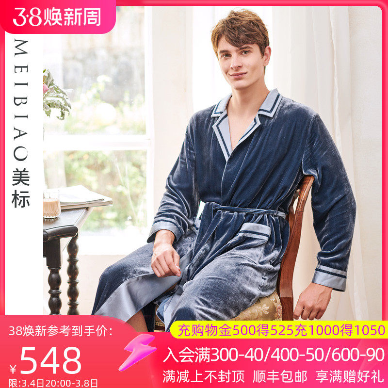 【断码钜惠】美标秋冬金丝绒保暖蚕丝睡袍浴袍睡衣可外穿家居服男