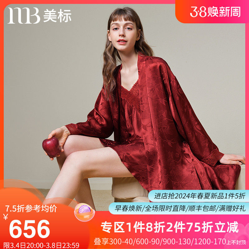 美标真丝浴袍婚庆晨袍睡袍两件套女春秋重磅丝绸睡衣桑蚕丝家居服
