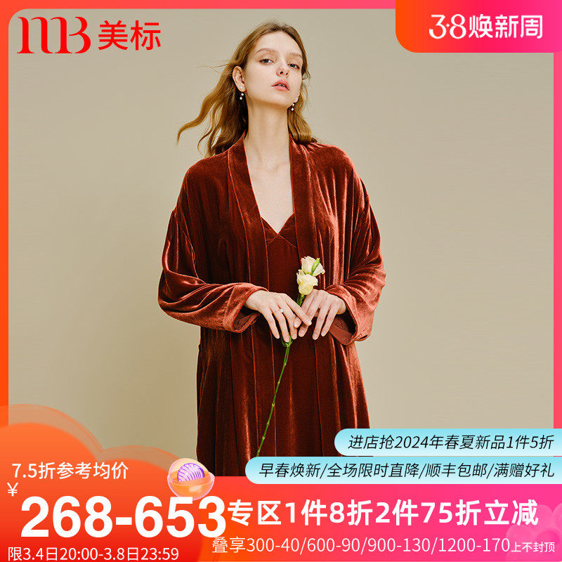 美标女秋冬款真丝桑蚕丝里料睡裙睡袍两件套金丝绒睡衣浴袍家居服
