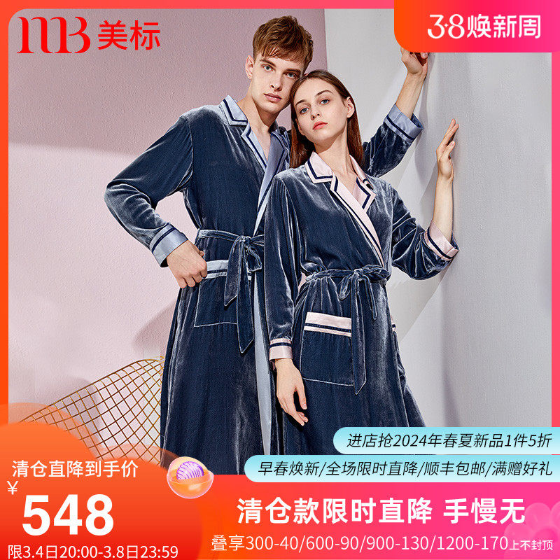 【断码钜惠】美标女秋冬金丝绒保暖蚕丝睡袍浴袍男睡衣情侣家居服