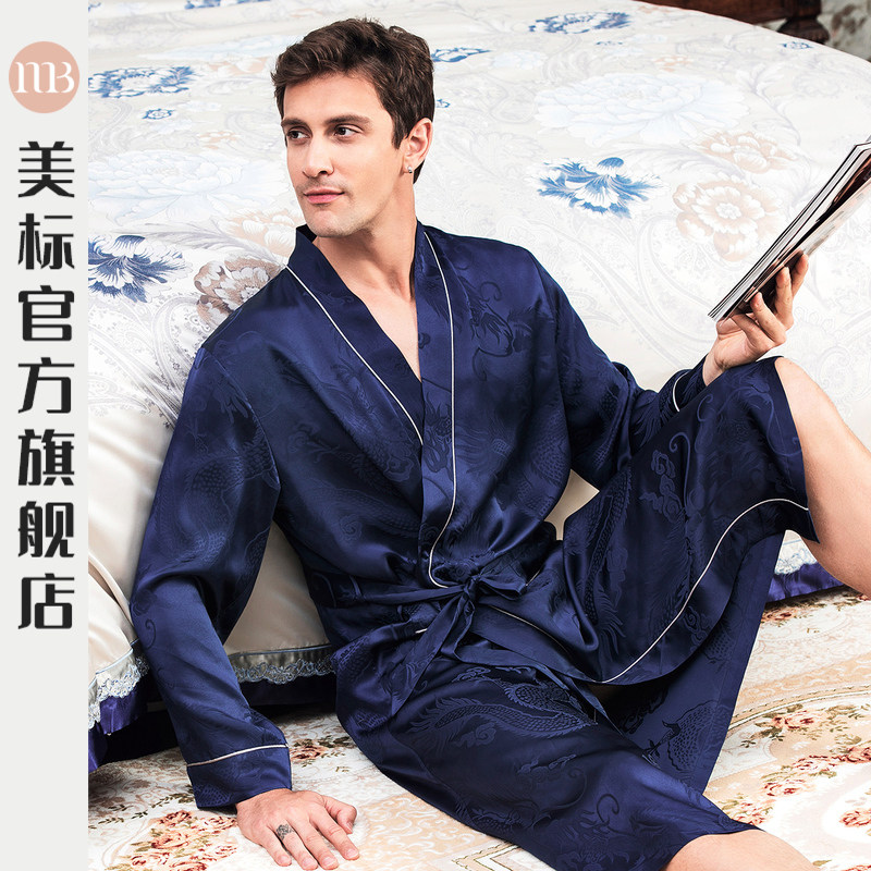 美标旗舰店新品男士长袖真丝睡衣桑蚕丝套装丝绸家居服高档送礼盒